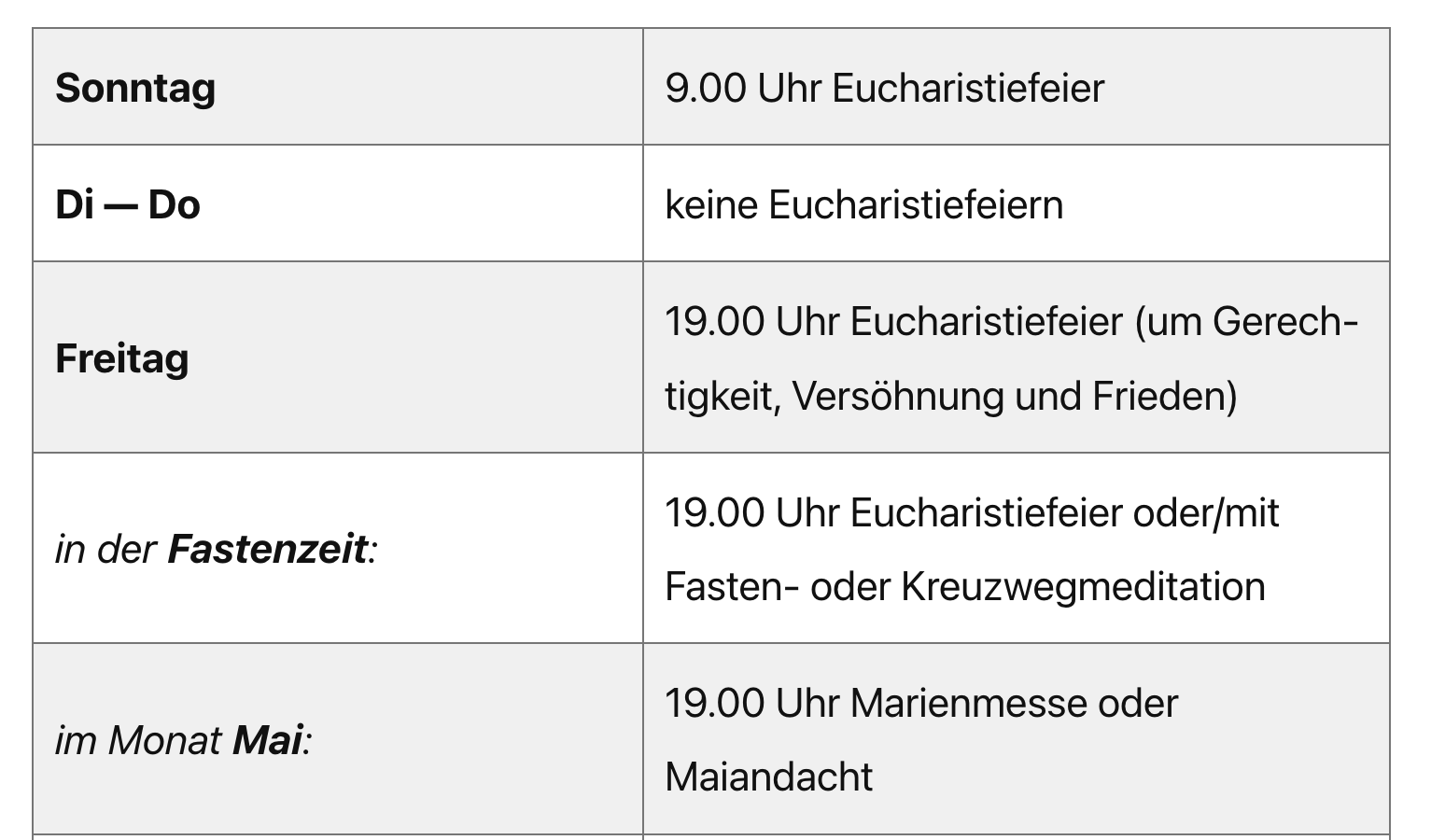 Bitte beachten Sie auch die Vermeldungen sowie die Hinweise im aktuellen Gottesdienstplan und Pfarrbrief!