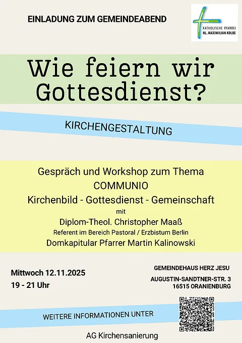 Weiterhin gehen wir der Frage nach, wie wir den Gottesdienst als lebendige Gemeinschaft – als „Communio“ – gestalten können. Herzliche Einladung an alle, die Lust haben, sich einzubringen, zuzuhören, mitzudenken und mitzugestalten!
