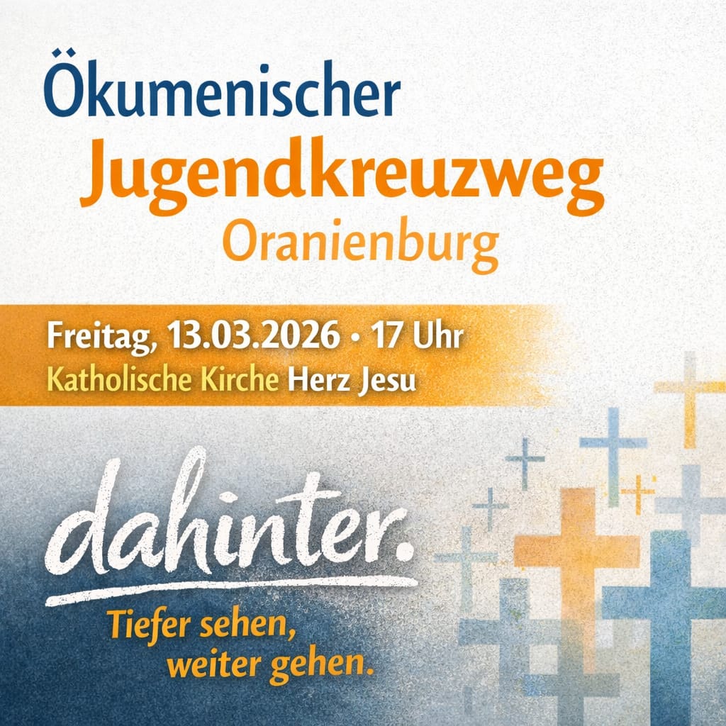 Am Freitag, den 13. März 2026 findet um 17:00 Uhr in der Herz Jesu-Kirche der Ökumenische Jugendkreuzweg statt. Unter dem Motto „dahinter. Tiefer sehen, weiter gehen“ nähern wir uns dem Leidensweg Jesu und ergründen, was das Geschehen von Golgatha mit unserem Leben zu tun hat. Das Angebot richtet sich in erster Linie an unsere Jugendlichen und die Konfirmand:innen von St. Nicolai, aber natürlich sind auch Erwachsene gern gesehen. Wir freuen uns auf euer Kommen!